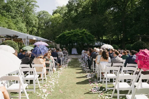 Casey and Charlie’s wedding day featured a huge rain storm right at ceremony time but luckily the wedding was inside the gorgeous greenhouse at the State Botanical Gardens of Georgia